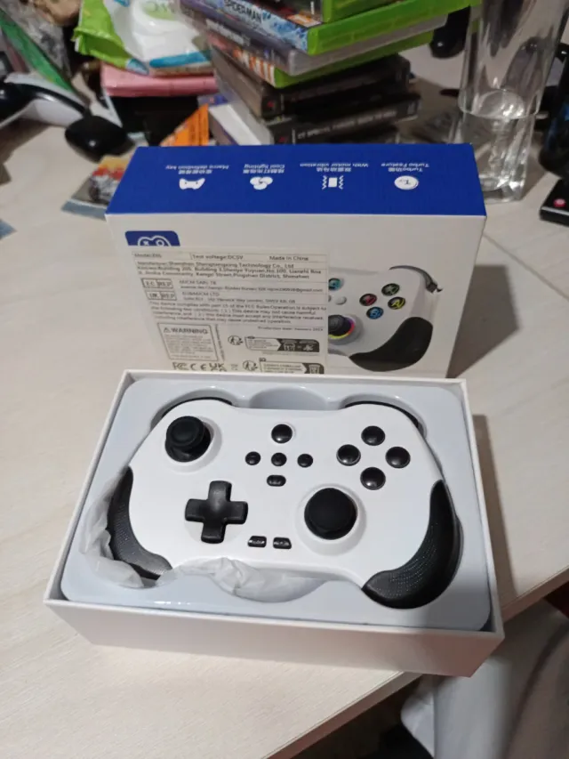 Detalles del productoMando de gaming en color blanco, diseñado para una experiencia de juego cómoda.