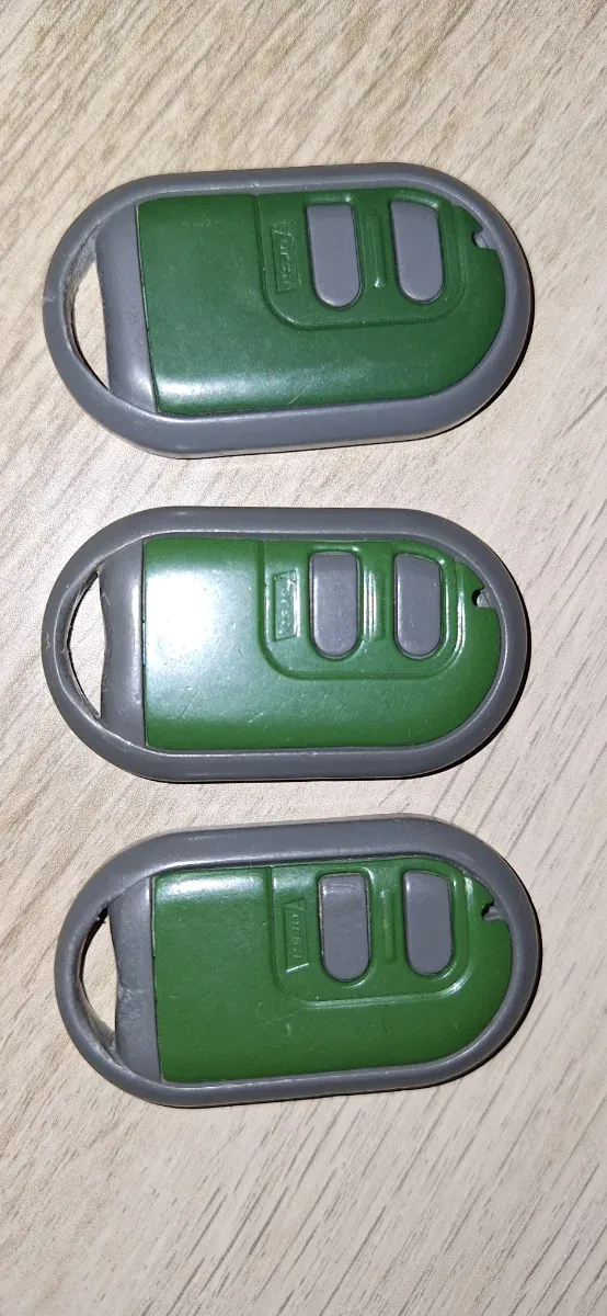 Tres mandos para garaje de la marca Forsa. Son de color verde y gris.funciona a 868Mhz Perfecto estado. Por cambio de centralita. - Diseño ovalado. - Incluye anilla para llavero.