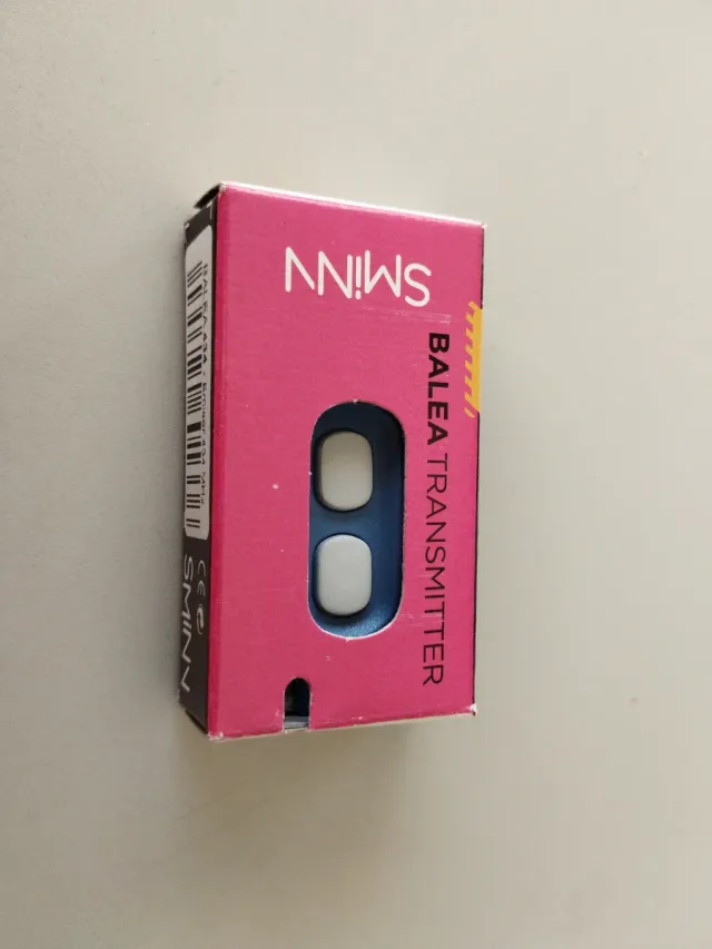 Mando a distancia para apertura de garajes de la marca SMINN, modelo BALEA TRANSMITTER. Diseño compacto y moderno. - Color: Azul y beig - Dos botones blancos.