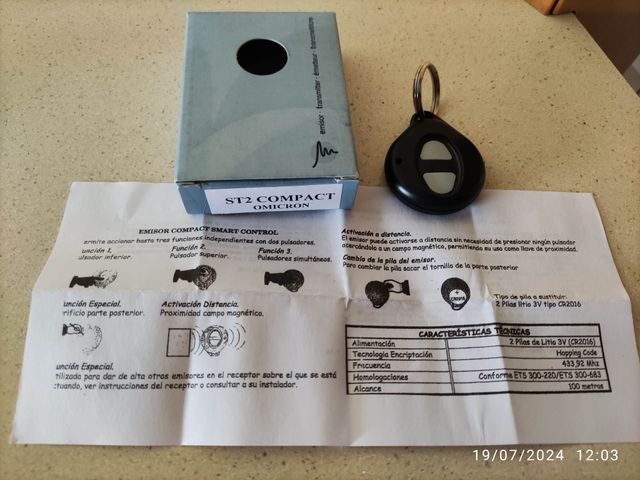 Detalles del productoSe venden 5 mandos de garaje ST2 compact. Funcionan con 2 pilas tipo CR2016 en la frecuencia 433,92 Mhz y tienen un alcance de 100 metros. Son fácilmente configurables