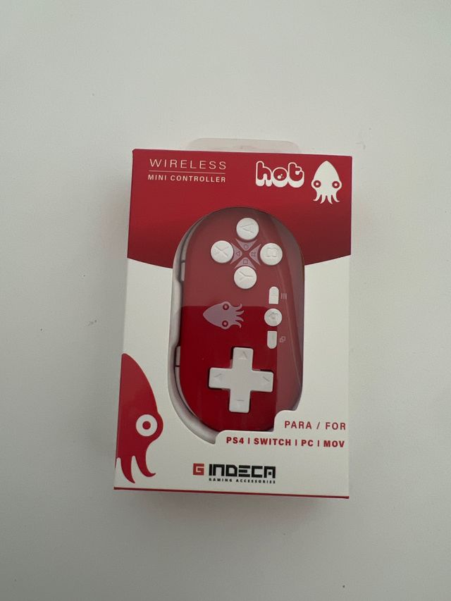 Mando inalámbrico compacto de color rojo. - Diseño mini y ligero. - Compatible con PS4, Switch, PC y MOV. - Incluye el logo de G INDECA.
