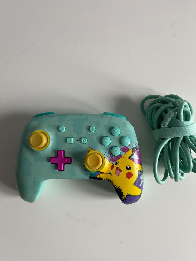 Detalles del productomando para una sola persona con un diseño de picachu, es un mando recargable, va por bluetooth pero tambien se puede usar con cable, tiene una carga de 30 horas de juego, viene con su caja y cargador de 3 metros de largo, viene con botones adicionales traseros que se pueden configurar.