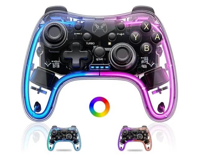 Detalles del productoMando inalámbrico con un diseño transparente y luces RGB.