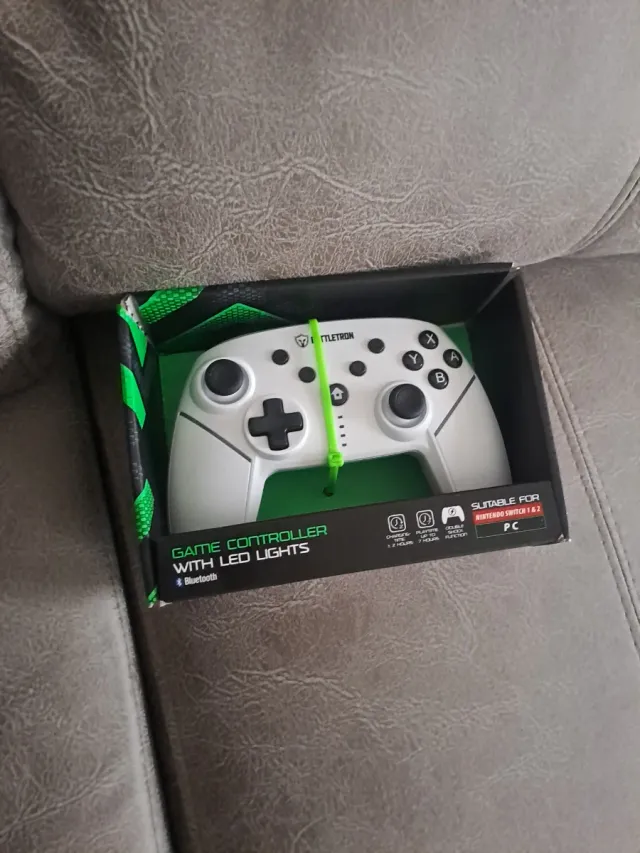 Mando de juego blanco con luces LED. - Compatible con Nintendo Switch y PC. - Conexión Bluetooth.