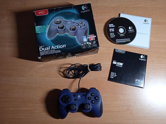 Joystick Logitech Dual Action, como nuevo, sin uso. Incluye mando, cable y CD de instalación. - Mando con cable. - Diseño cómodo y ergonómico. - Incluye CD de software.