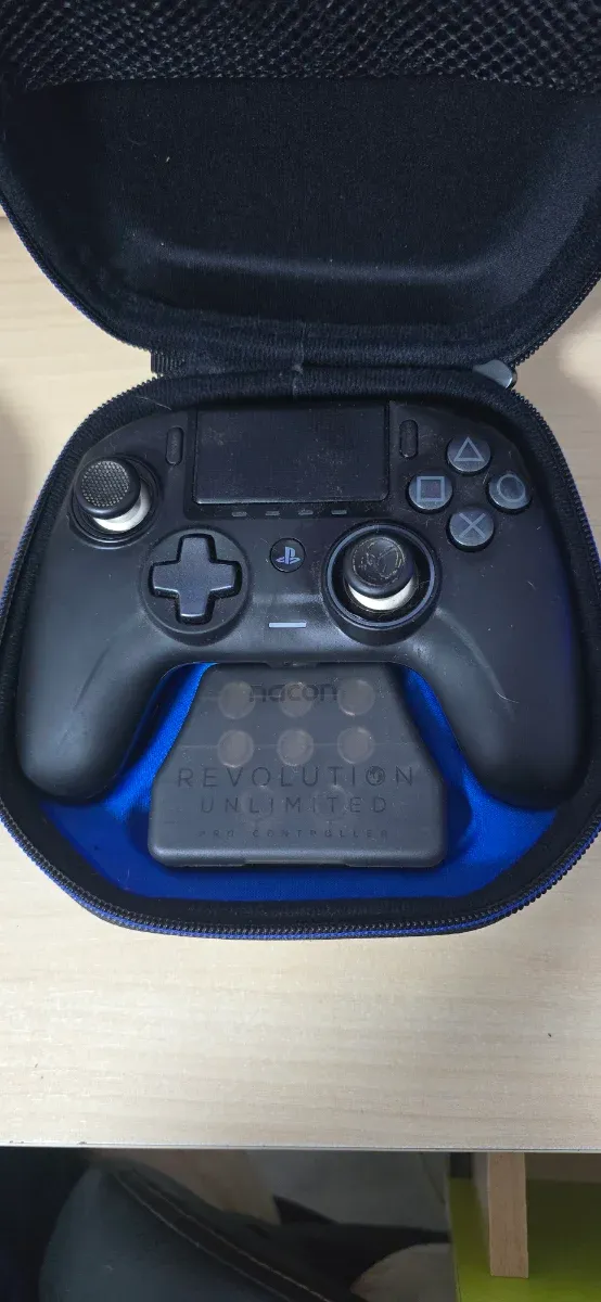 Mando Nacon Revolution Unlimited en su estuche. - Incluye mando y dongle USB. - Estuche de transporte rígido con interior azul.