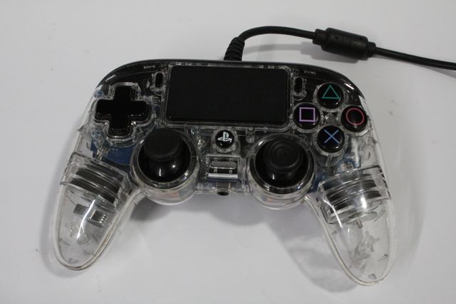 Detalles del productoMando Nacon para PS4 con un diseño transparente que permite ver el interior.