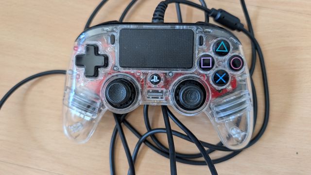 Vendo mando transparente para PlayStation 4. Está en buen estado, con algunos signos de uso. - Con cable USB. - Diseño translúcido.
