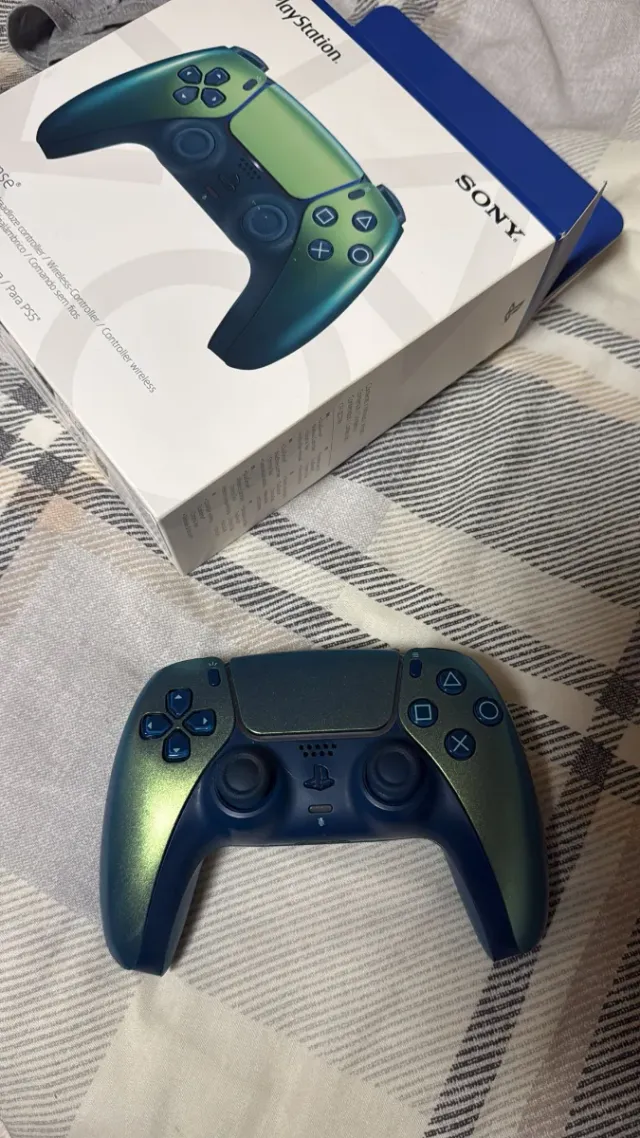 Detalles del productoMando inalámbrico DualSense para PlayStation 5 con un diseño degradado en tonos verdes y azules.