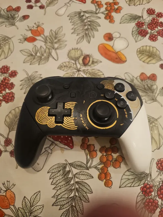Mando Pro para Nintendo Switch con un diseño único. - Color negro y blanco. - Detalles dorados. - Sin función NFC.