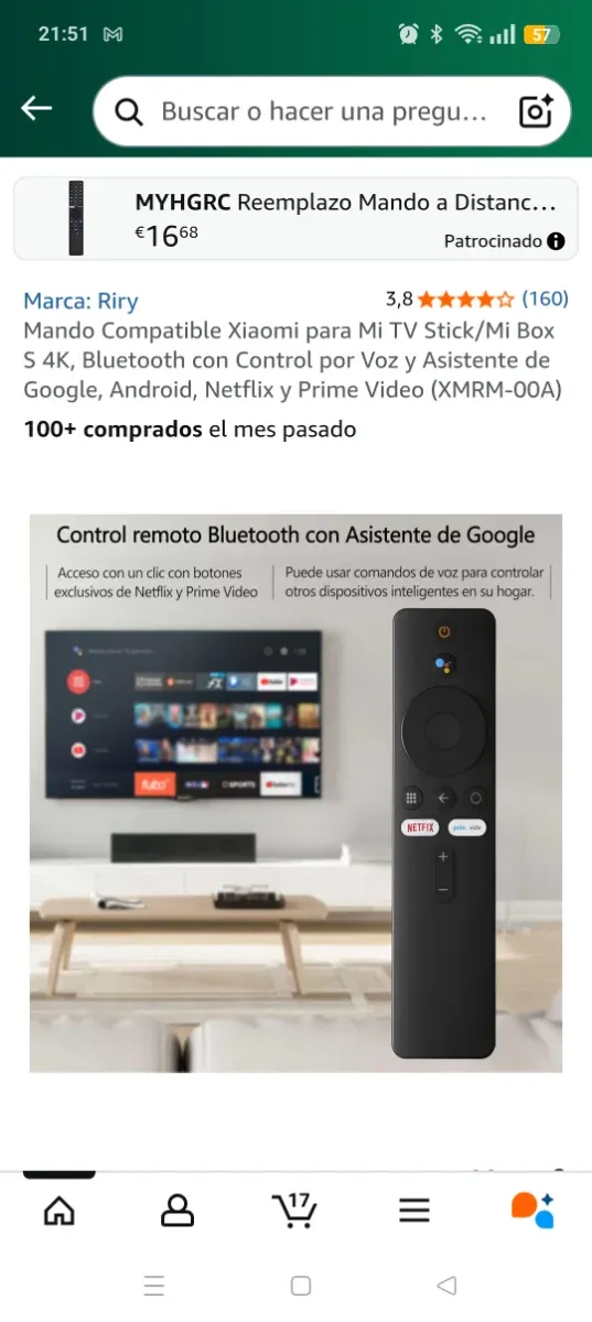 Detalles del productoMando a distancia compatible con Xiaomi Mi TV Stick y Mi Box S 4K. Conexión Bluetooth y control por voz.