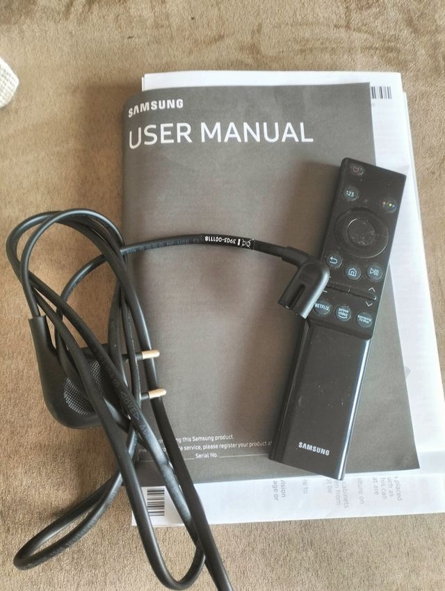 Mando y cable de alimentación original para TV de Samsung. Si necesitas tengo el manual de usuario.