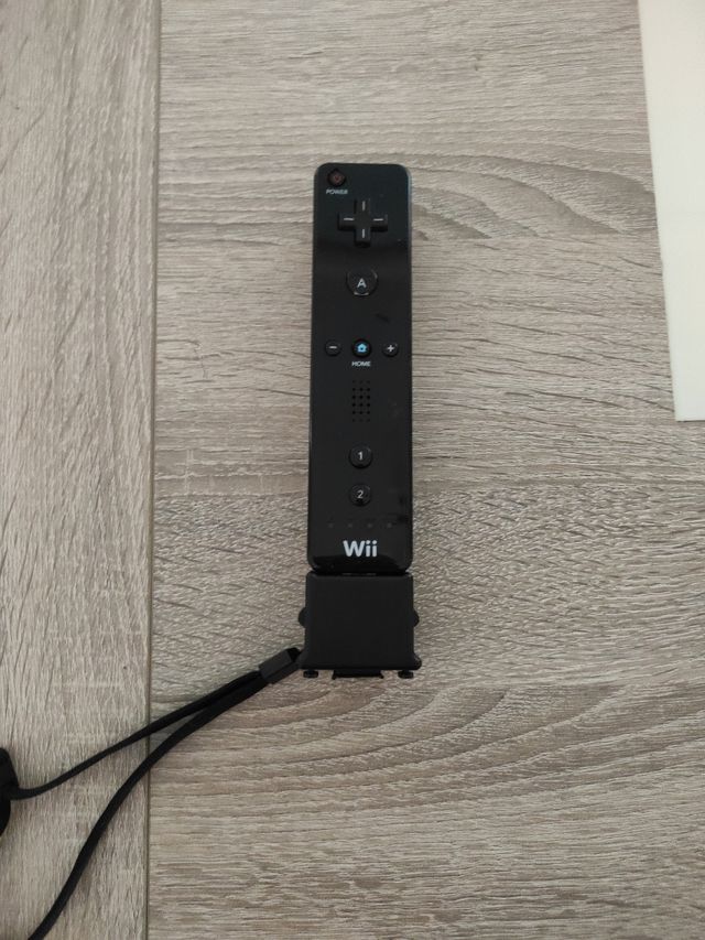 Mando de control para consola Wii. Color negro. - Incluye correa de seguridad y wii motion plus