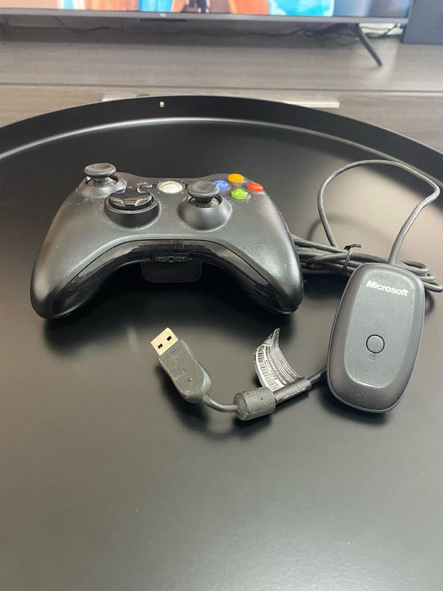 Controlador inalámbrico para Xbox 360 con receptor USB para PC. - Mando de color negro. - Receptor con logo de Microsoft.