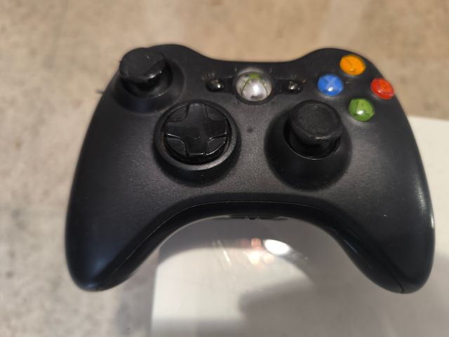 Mando inalámbrico Xbox 360 en buen estado. Es de color negro y presenta un ligero desgaste por el uso. - Funciona correctamente. - Incluye 1 mando.