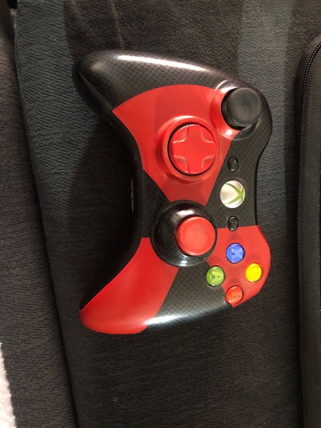 Mando para Xbox 360 con un diseño llamativo en rojo y negro. - Diseño bicolor. - Acabado tipo carbono.