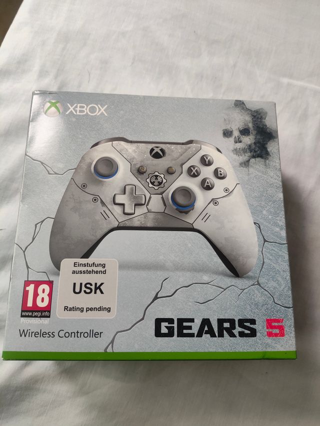Detalles del productoMando inalámbrico para Xbox con diseño inspirado en Gears 5. Presenta un acabado texturizado y detalles en gris y azul.