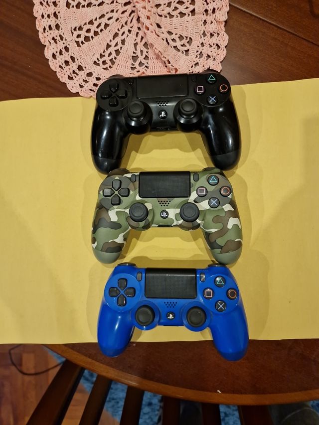 Detalles del productoVendo 3 mandos de ps4 originales, estéticamente nuevos pero con defectos funcionales, el militar se le mueve un poco el jostick derecho, al azul lo mismo aveces se le mueve el jostick derecho y el negro se le queda pegado el l2, los vendo los 3 por 60 o por separado, cualquier duda mande mensaje