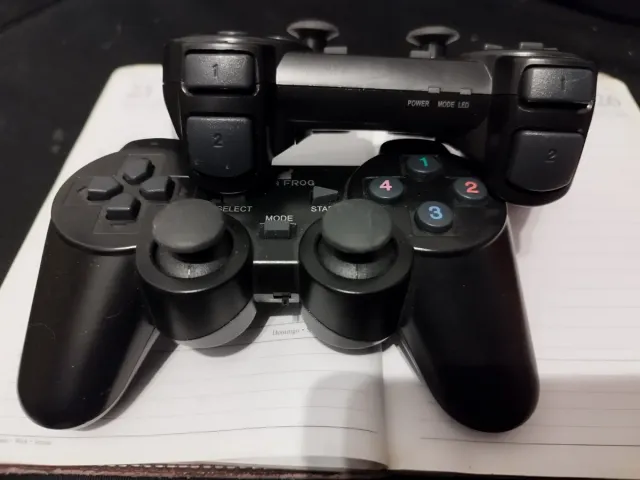 Dos mandos de videojuegos NUEVOS, sin usar, Bluetooth. - Botones con números 1, 2, 3 y 4. - Indicadores de POWER, MODE y LED.