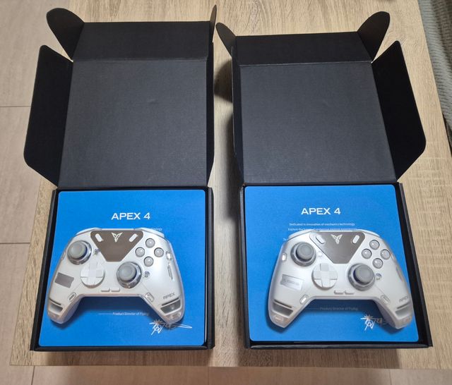 Detalles del productoSe venden dos mandos Flydigi Apex 4, ambos nuevos y en perfecto estado. Compatibles con Pc, Nintendo switch y móviles. Sacados de la caja para probarlos y actualizar a la última versión. Cada mando a 45€.