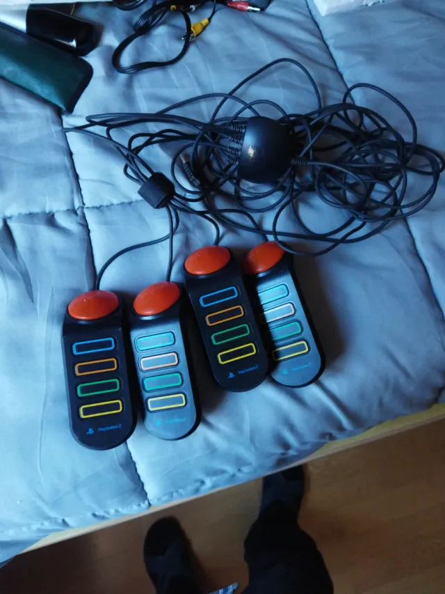 Set de 4 mandos para PlayStation 2, compatibles con Guitar Hero. Ofréceme y son tuyos - Diseño ergonómico. - Botones de colores. - Conexión por cable.