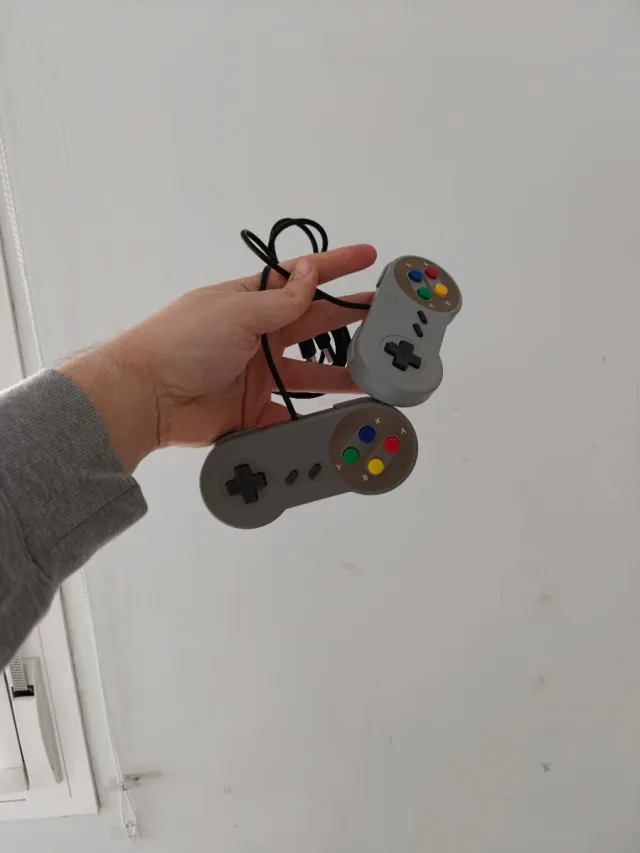Dos mandos grises para consolas, con conexión USB. - Diseño ergonómico. - Botones de colores.