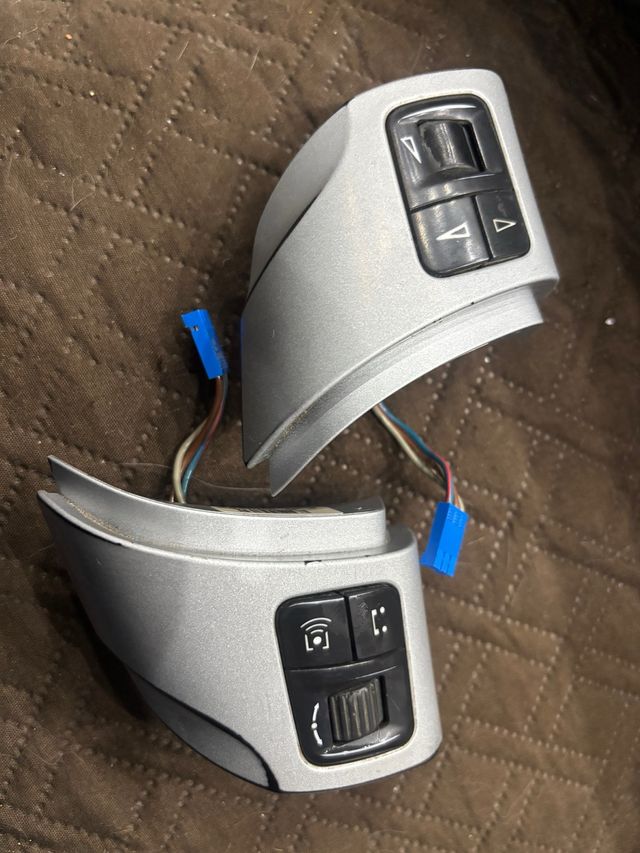 Mandos para el volante de un Opel Vectra C. Piezas de color gris plateado.
