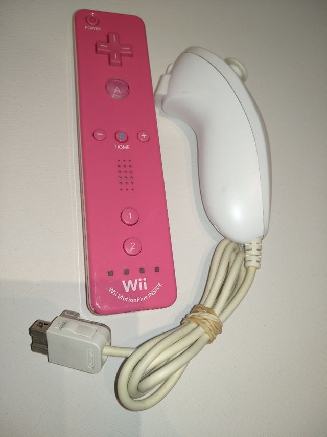 - Mando Wii Remote en color rosa con Motion Plus integrado.