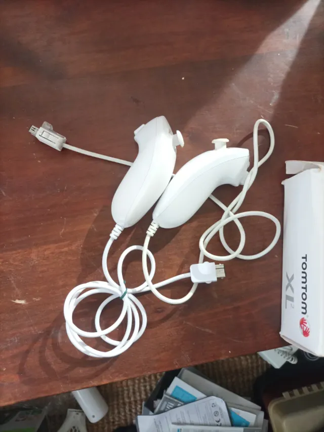 Dos mandos blancos para Nintendo Wii. - Color blanco. - Conexión por cable.