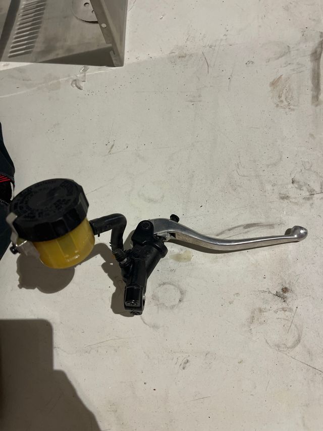 Maneta de freno para Yamaha R6. Incluye depósito de líquido. - Material: Metal y plástico. - Color: Plateado y negro.