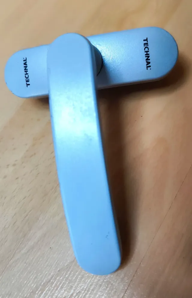 Se vende maneta de la marca TECHNAL para balconera oscilovatiente / puerta / ventana. Diseño moderno y ergonómico. Color plateado mate NO NEGOCIABLE