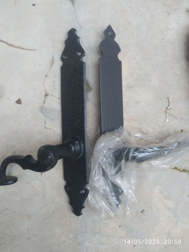 Detalles del productoPongo a la venta dos juegos de manetas para puerta. Un juego es de color negro con un diseño elegante y el otro es blanco, con un estilo más moderno. Ambos juegos incluyen la manilla y la placa. - 2 juegos de manetas para puerta