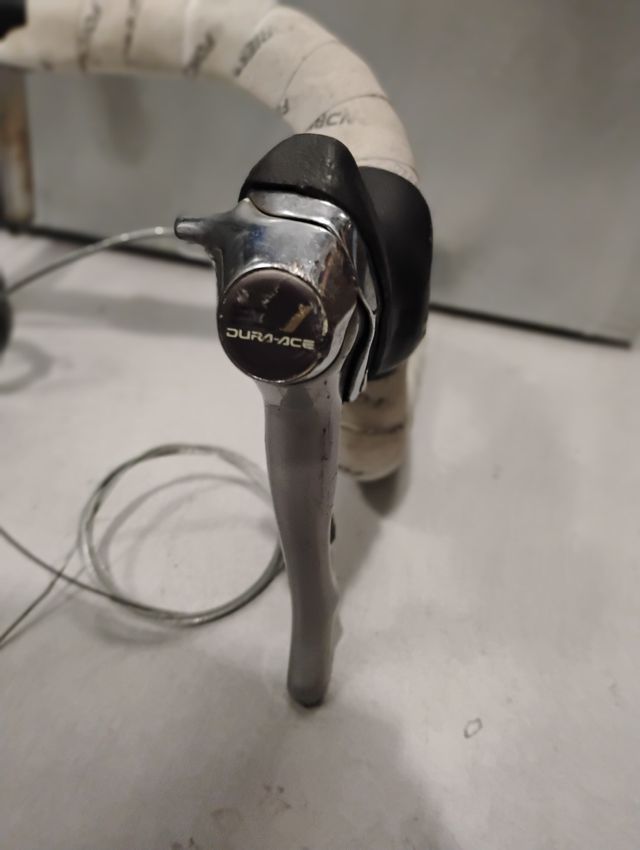 Detalles del productoManetas de cambio Shimano Dura-Ace 7400 para transmisión 2x8 velocidades. Se encuentran en buen estado, con señales normales de uso.