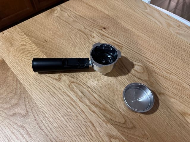 Mango y filtro para cafetera Cecotec Power Espresso 20. - Mango de plástico negro. - Filtro de metal.