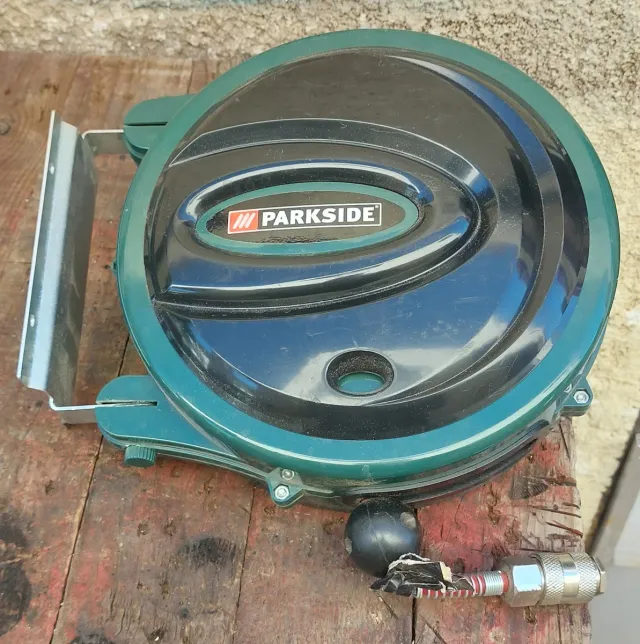Detalles del productoEnrollador de manguera de aire de la marca Parkside. Ideal para mantener tu espacio de trabajo ordenado.