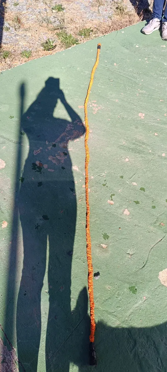 Manguera extensible de color naranja, ideal para riego. - Longitud aproximada: 5 metros. - Material flexible y resistente. - Conexiones estándar.
