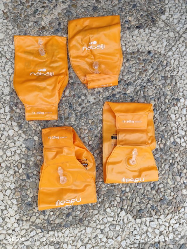 Detalles del productoSe venden manguitos de flotación para bebé de la marca Nabaiji. Son de color naranja y estan en buen estado.
