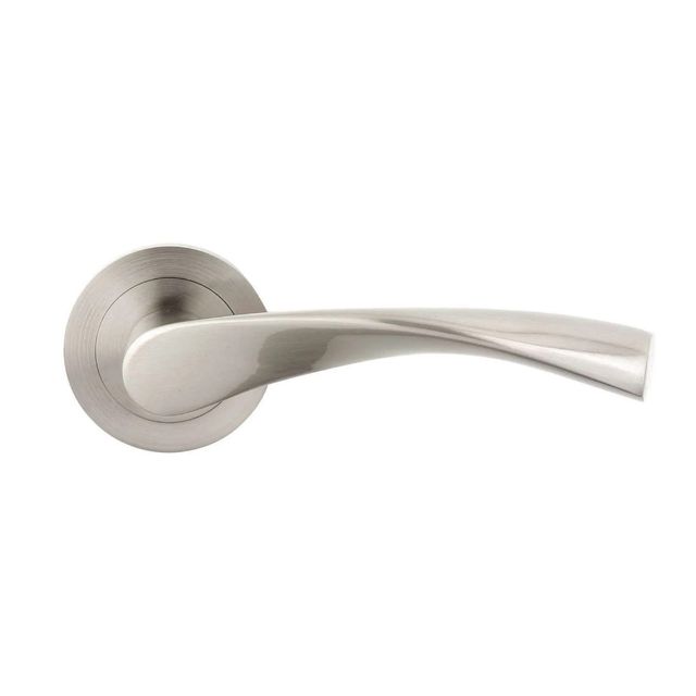 Manilla aluminio con roseta redonda de Ø50mm. Para puertas interiores. Incluye tornillos para el montaje.