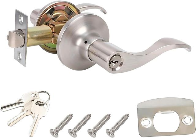 Detalles del productoNueva sin uso. Manilla de aleación de aluminio con cilindro de cobre, cerradura por llave y botón de bloqueo con apertura hacia derecha (cierre con llave en el exterior), para puertas de grosor 35-50mm. Incluye: 3 llaves, picaporte ajustable 60 o 70mm, soporte marco puerta anti-tarjeta, bolsita con tornillería y manual de instrucciones. Se vende por contacto directo en Zaragoza o con envío. Precio fijo.