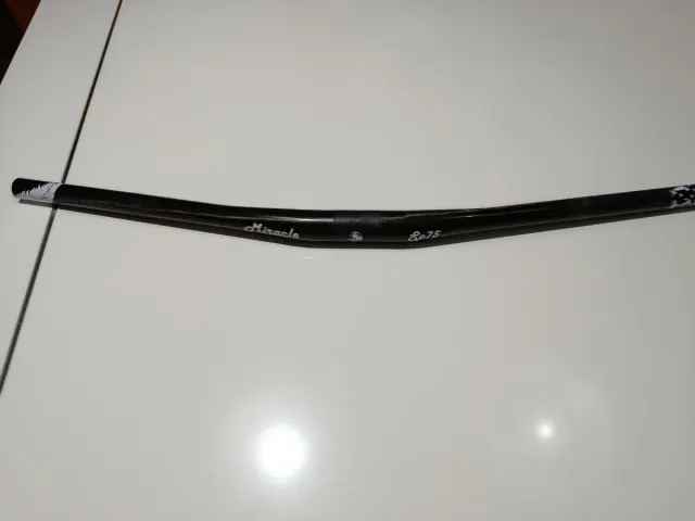 Manillar de carbono para bicicleta de montaña. - Marca: Miracle - Modelo: So75 - Material: Carbono - Diseño curvo Cortado a 72cm Peso 163gr
