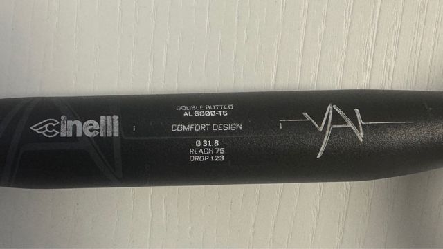 Manillar de pista Cinelli con diseño de confort. - Fabricado en AL 6000-T6 con doble conificado. - Diámetro: 31.8 mm. - Reach: 75 mm. - Drop: 123 mm.