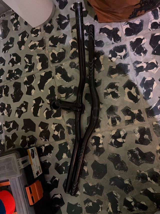 Manillar de bicicleta de montaña. - Color negro. - Diseño curvo.