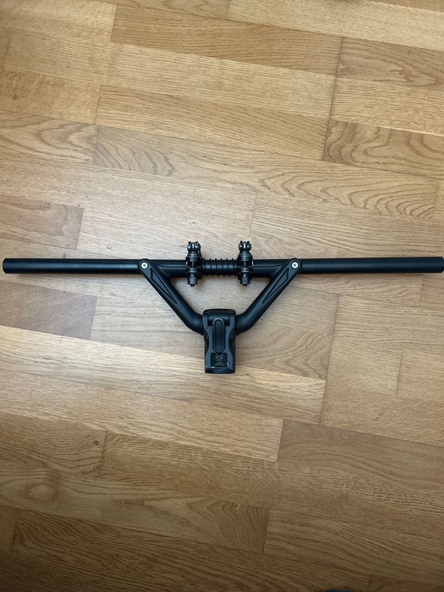 Manillar para patinete eléctrico Dualtron. Diseño robusto y adaptable. Con marcas de uso. - Material: Aluminio. - Color: Negro. - Mecanismo de ajuste.