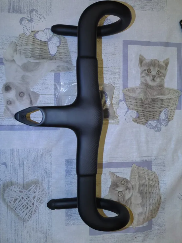 Manillar integrado de carbono para bicicleta. - Material: Carbono. - Diseño aerodinámico. -Potencia 90mm aprox Precio no negociable,