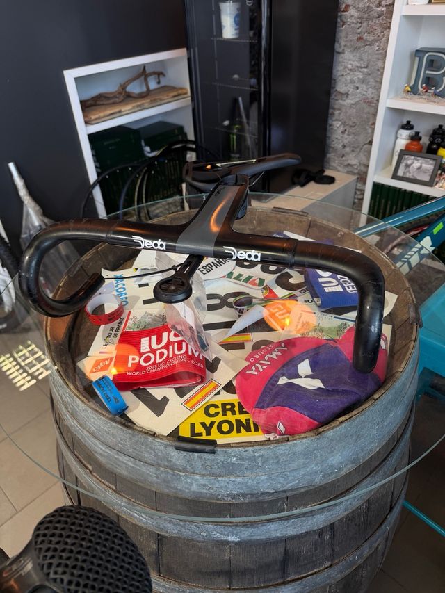 Manillar integrado de la marca Deda Carbono, medidas 140x38 Incluye soporte GPS