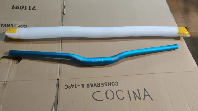 Manillar de bicicleta de montaña en color azul doble altura - Fabricado en aluminio. - Diseño curvo para mayor comodidad. -72cmt largo -NUEVO A ESTRENAR