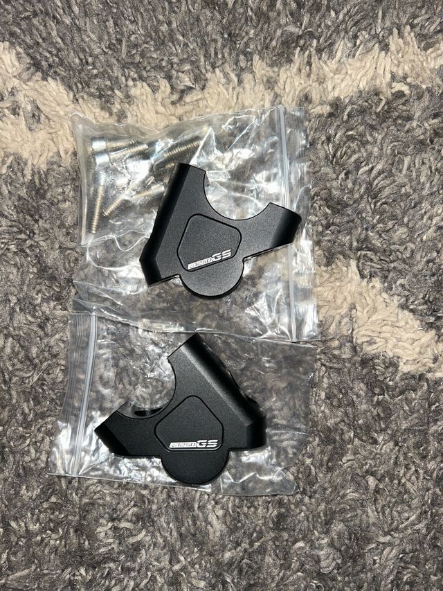 Soportes de manillar para moto en color negro. Incluyen tornillería. - Fabricados en aluminio. - Diseño robusto. - Logo grabado.