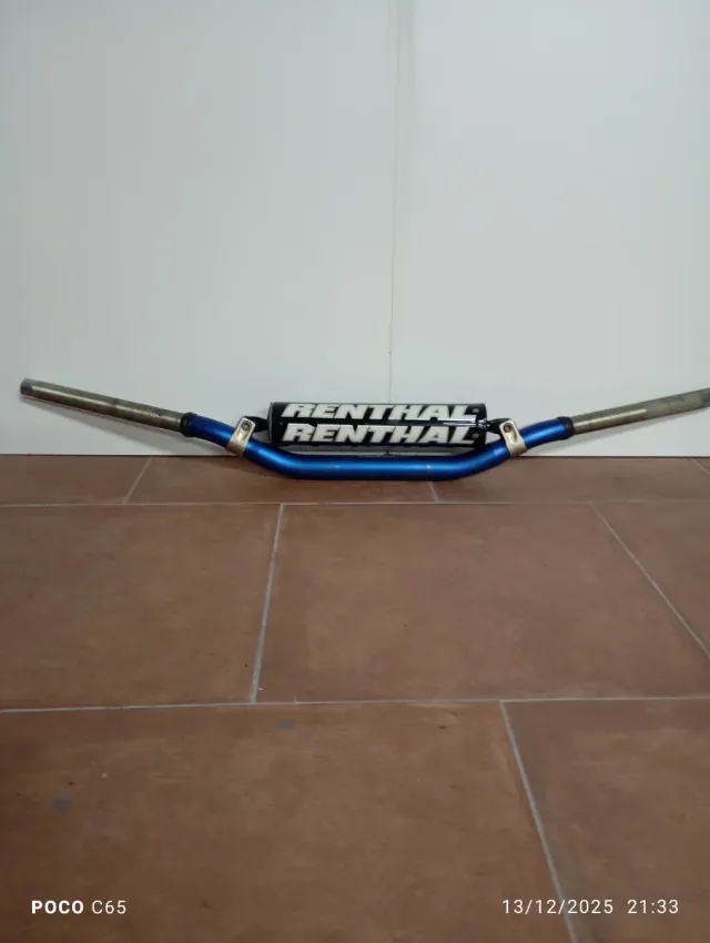 Manillar Renthal 999 de color azul.80euros Protector disco freno trasero 4mx:40euros - Diseño curvo. - Logotipo Renthal en blanco.