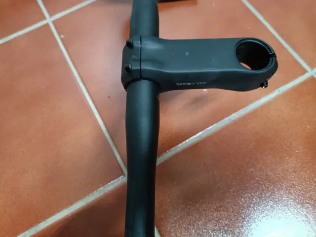 Manillar Syncros de aluminio para bicicletas de gravel. Potencia 100 Ancho 420 arriba, 500 abajo - Material: Aluminio. - Diseño para gravel.