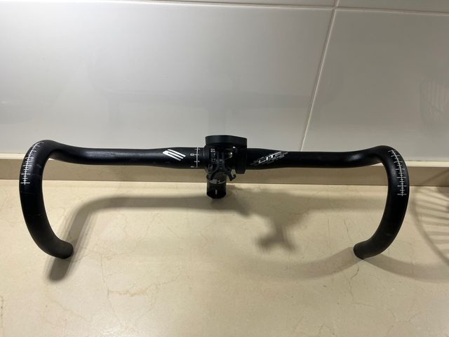 Detalles del productoManillar Lite Road de BH fabricado en aluminio 6061; reach 70 mm; drop 125mm; anchura 440mm; peso 360g. Con potencia BH SL fabricada en aluminio forjado 3d y en aluminio 6061 la placa frontal, para tubo de dirección 28,6 mm; ángulo +/-6º; peso 128 g. (medida 90 mm); diámetro Ø 31,8 mm.